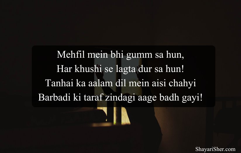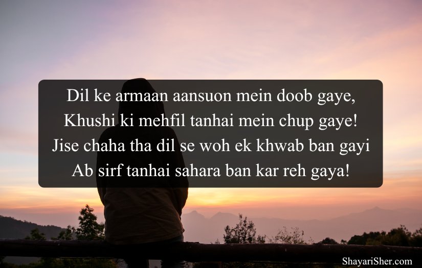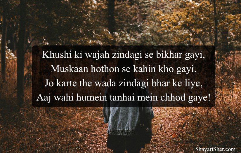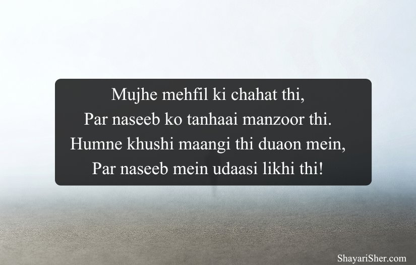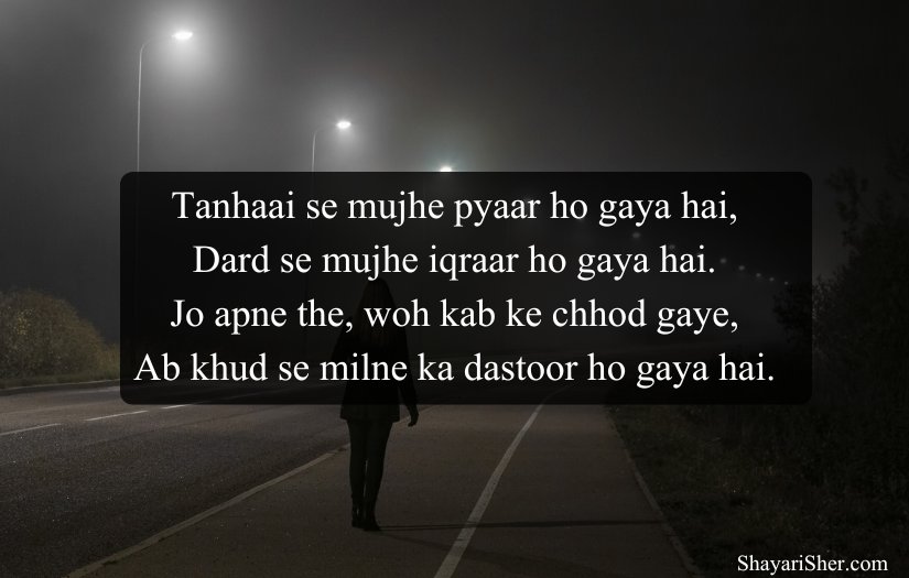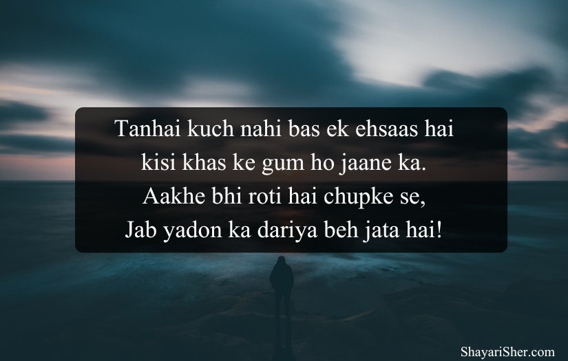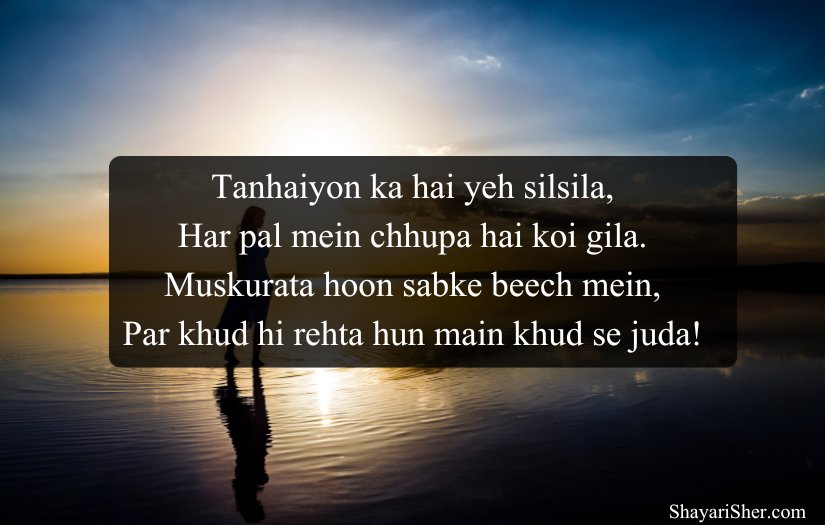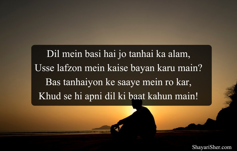 Alone Sad Shayari in English expresses the deep pain and loneliness that people feel when their hearts are broken or when they are left alone. These shayaris describe the silence, emptiness, and thoughts that come in moments of sadness. Through emotional and powerful words, they capture how being alone sometimes hurts more than words can say.