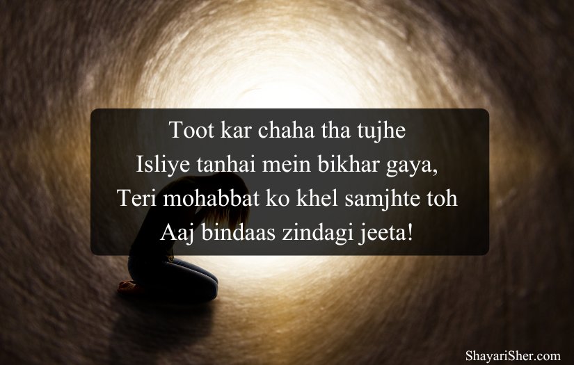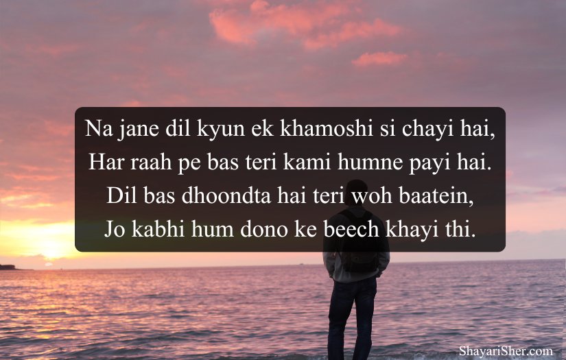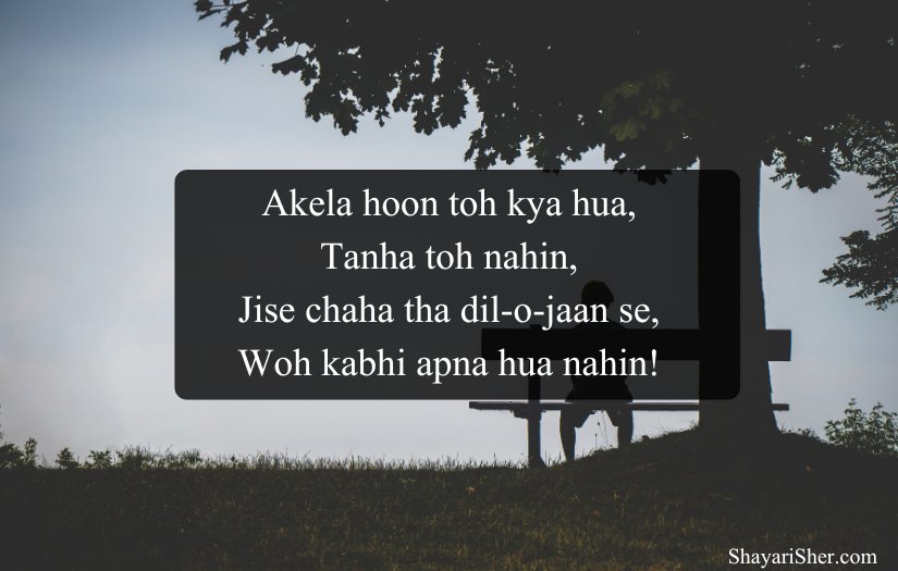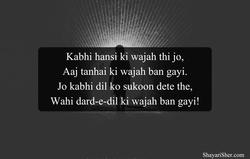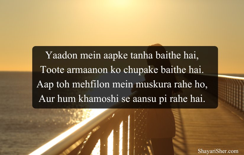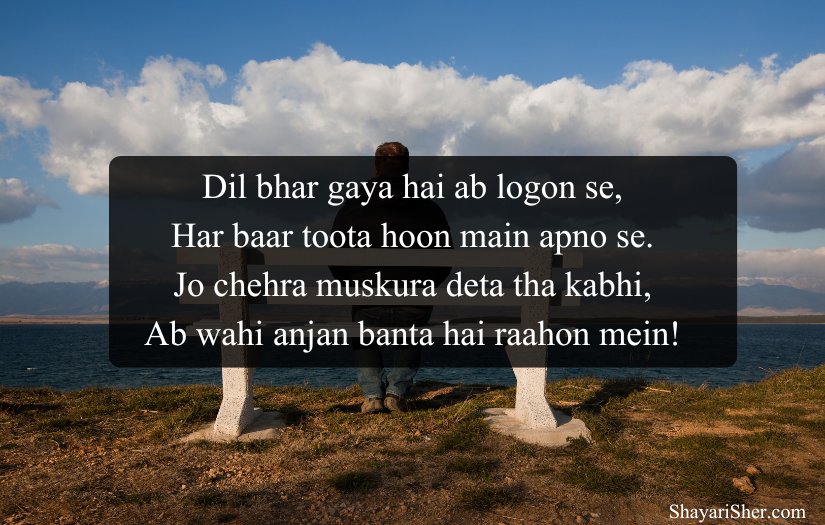 Many poets write Sad Shayari on Loneliness to express how separation, heartbreak, and distance change a person. These lines reflect sleepless nights, unspoken feelings, and the struggle of pretending to be fine. Alone sad shayari connects with anyone who has felt ignored, unloved, or left behind by someone they cared for deeply.