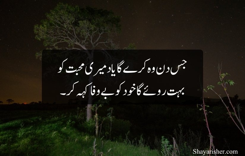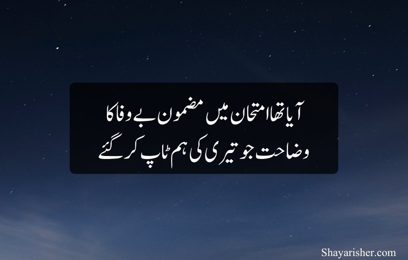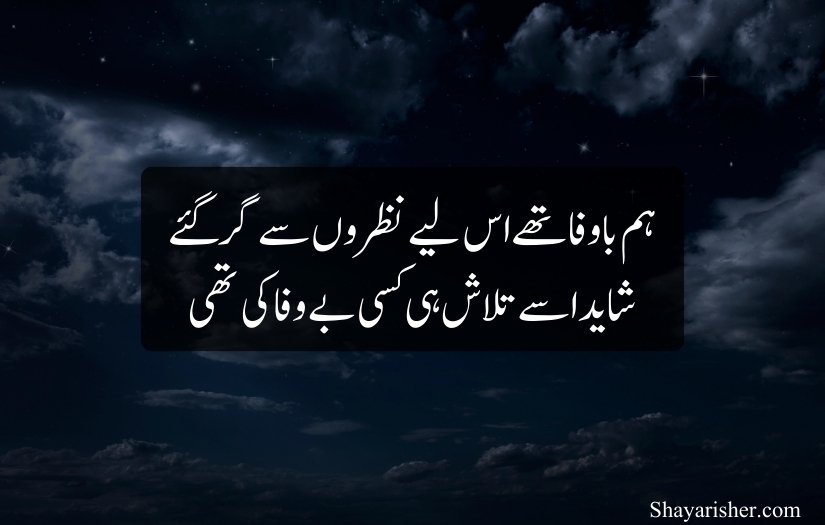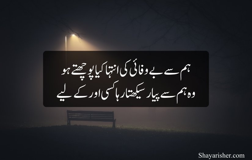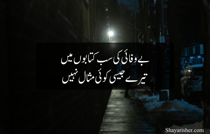 Bewafa Shayari in Urdu reflects the deep emotions of heartbreak, betrayal, and unfulfilled love. It captures the pain a person feels when trust is broken by someone they loved sincerely. These verses often highlight the emotional journey from hope to sorrow, expressing how betrayal changes one’s outlook on love and relationships.