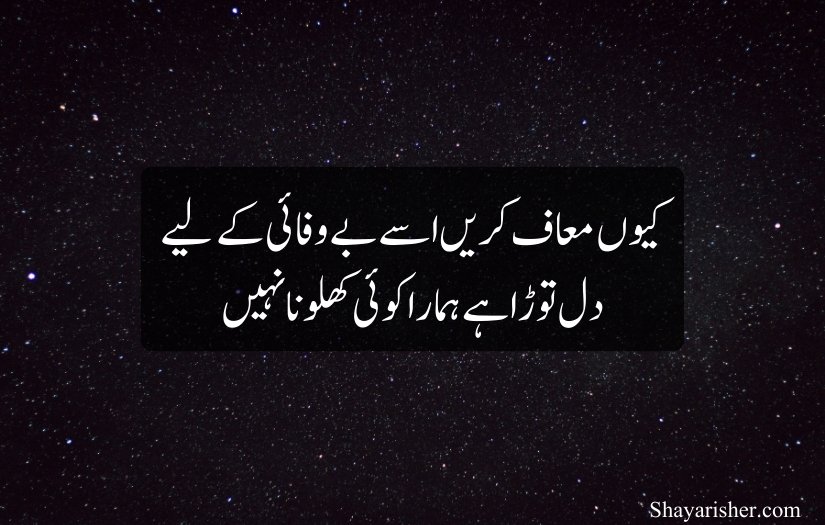 Bewafa Shayari in Urdu continues to resonate because it speaks directly to the human heart. It offers comfort to those going through emotional struggles by showing that they are not alone in their pain. Whether shared on social media or spoken in gatherings, these lines help people express feelings they cannot easily put into words. Emotional Bewafa Shayari in Urdu for Broken Hearts | Sad Bewafa Shayari in Urdu True Feelings of Pain | Best Bewafa Shayari in Urdu Betrayal & Heartbreak Lines | Deep Bewafa Shayari in Urdu Dard Bhari Poetry