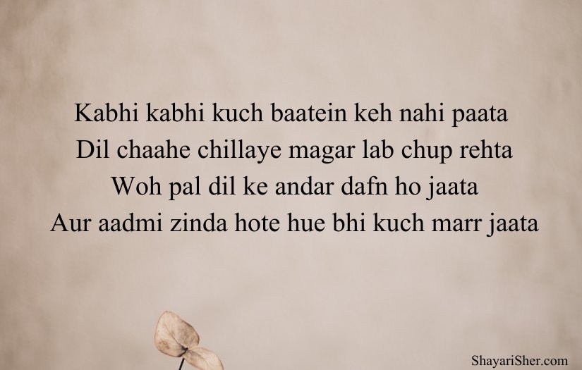 Gulzar Shayari reflects life’s realities in the most poetic way. His verses often talk about human emotions, broken hearts, and the beauty hidden in small moments. Through his writing, Gulzar reminds us that love and sorrow both have meaning and that life’s silence often speaks louder than words.